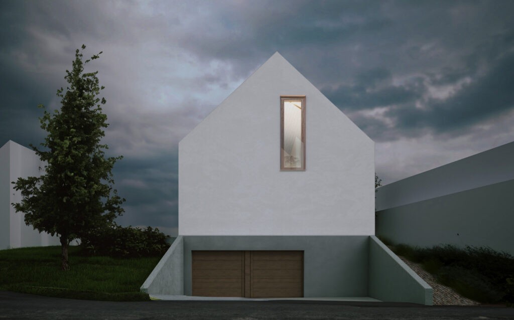 Haus F kombiniert Wohnen und Arbeiten für einen Fotografen auf durchdachte Weise. Zur Straße hin schützt eine geschlossene Fassade die Privatsphäre, die einzige Öffnung bildet ein großes Fenster, das vom Flur im ersten Stock eine direkte Blickachse nach außen schafft.